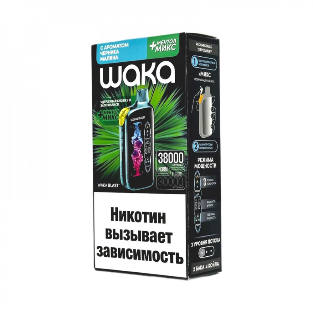 WAKA BLAST 38000 Hard - Черника малина + ментол микс - купить в Можге